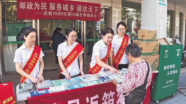 10月9日,江西省泰和县邮政分公司举办世界邮政日主题宣传活动。现场通过业务咨询与展示,向市民普及邮政在乡村振兴、普惠金融等领域的现代化服务。该活动同步发起“我是返箱行动π”绿色倡议,在全县邮政网点与社区布设回收箱,推广可循环使用的“环邮箱”,将服务宣传与环保理念深度融合,展现了邮政服务民生、践行绿色发展理念的新形象。 □高科峰 摄影报道